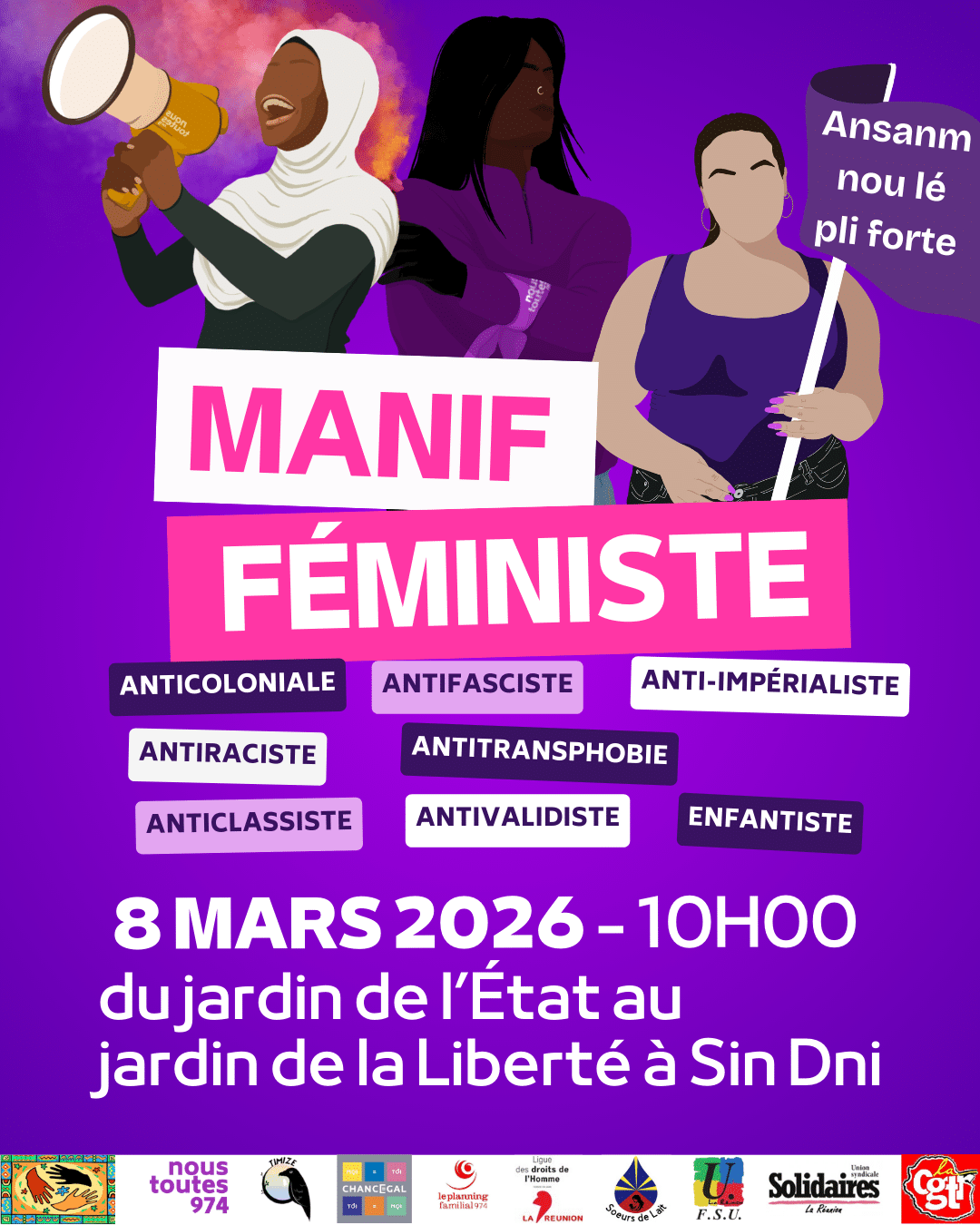 MANIF 8 MARS : droits des femmes MANIFESTATION du JARDIN DE L’ÉTAT À LA PRÉFECTURE : RENDEZ VOUS À 10H